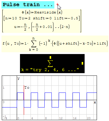 SMath Forum SMath Studio Samples Pulse Train 1 Pages (1 items) Pulse Train - Pulse Train - Messages Go to last post #1 Posted: 11/19/2018 10:33:33 AM Jean Giraud 983 likes in 6,866 posts. Group: User 0Appendix Pulse train.sm (6.37 KiB) downloaded 620 time(s). 1 Pages (1 items) New Posts No New Posts