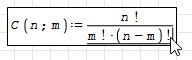 as you type m! in denominator, it omits brackets (m!)