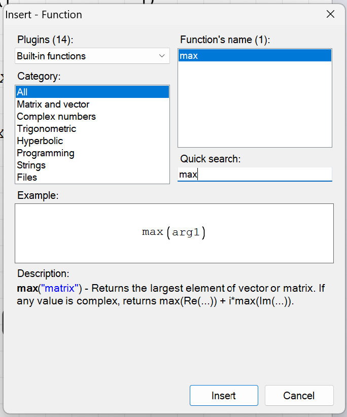 SMath Forum SMath Studio Samples Undocumented [min(x), max(x)] 1 Pages (3 items) Undocumented [min(x), max(x)] - Undocumented [min(x), max(x)] - Messages Go to last post #1 Posted: 1/9/2023 5:23:36 PM Jean Giraud 983 likes in 6,866 posts. Group: User Maths min(x),max(x).sm (13.4 KiB) downloaded 814 time(s). #2 Posted: 1/9/2023 6:26:19 PM Mark R Harris 4 likes in 90 posts. Group: User #3 Posted: 1/9/2023 9:41:08 PM Jean Giraud 983 likes in 6,866 posts. Group: User Welcome to add more related to projects. 1 Pages (3 items) New Posts No New Posts