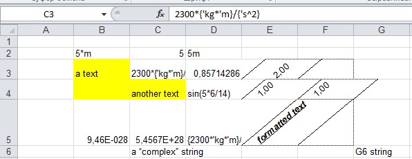 When I try to import a number with units of measurement from xlsx document, like for example: 2300 * {'kg *' m} / {'s ^ 2} in SMath Studio, I get string variable as a result: "2300 * {' kg * 'm} / {' s ^ 2} ".