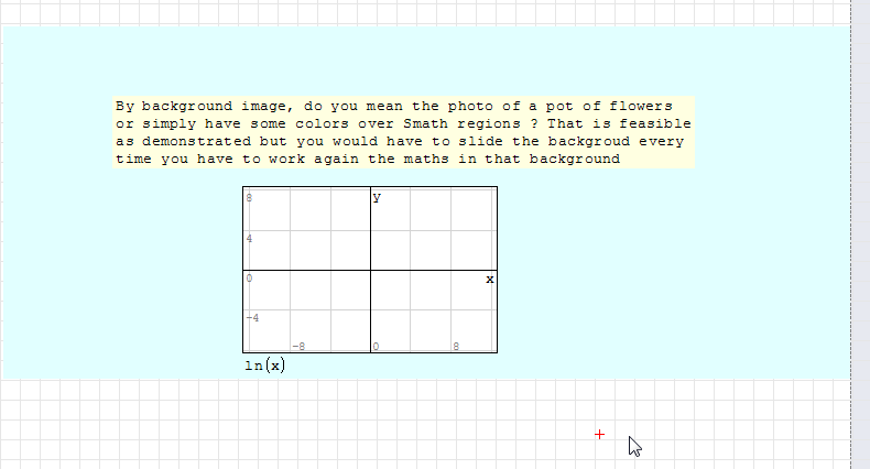 Nevertheless, their are still problem with sMath "Background" fonctions. Even after correcting the sm file, I was not able to add an other background image to the file using sMath UI. I did not test yet if I was able to do that by editing the sm file. More to follow...