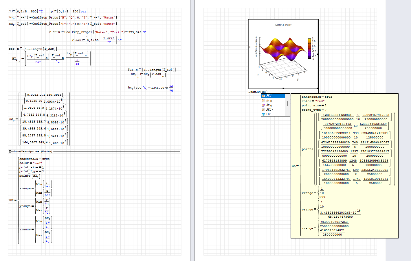 And i have another question. When I created plot of enthalpy I just wrote name of the "plot function". But in the manual, there is Draw3D("plot function"). Why is that?