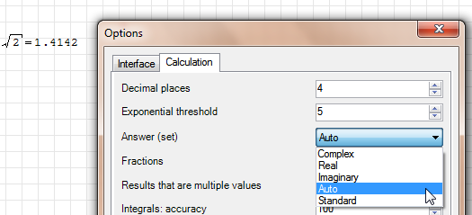 I am having a lot of trouble simply getting a square root to display as a single, positive scalar. There seems to be no option to change from the vector result, which displays the positive and negative results.