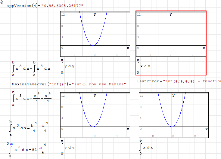 This replaces the built-in definition of int(4) with the one provided by the maxima plugin in the current downstream canvas.