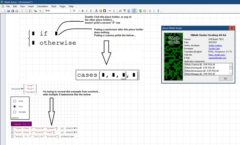 Also, when I downloaded and launched his example it told me he was using a newer SMath version