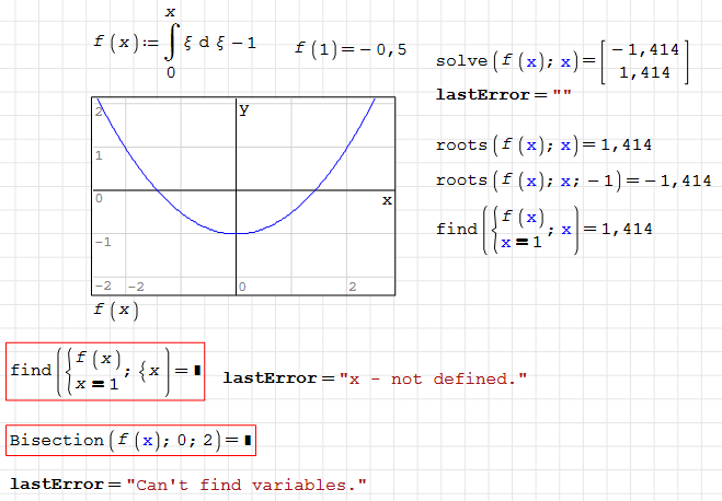 Hi Martin. The "symbolic" part in all the solvers in the NonLinearSolvers plugin is Unknowns. You can see from Bisection's syntax that it has to use it to determine which is the independent variable. In other words, if Unknowns fails, the solver fails too.
