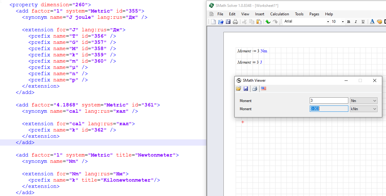 Choosing units in SMath Viewer. - Messages