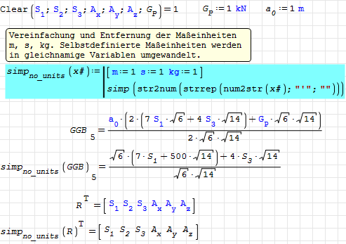 The unit workaround is also useful to enable symbolic simplifications which require the variable to be a scalar (and not a matrix), e.g. determinants and cross products. Not making this assumption in SMath is a design decision, which was explicitly confirmed by Andrey Ivashov, who actually insisted on this behaviour. Another workaround is the use of Maxima, where variables are handled as scalars unless declared otherwise.