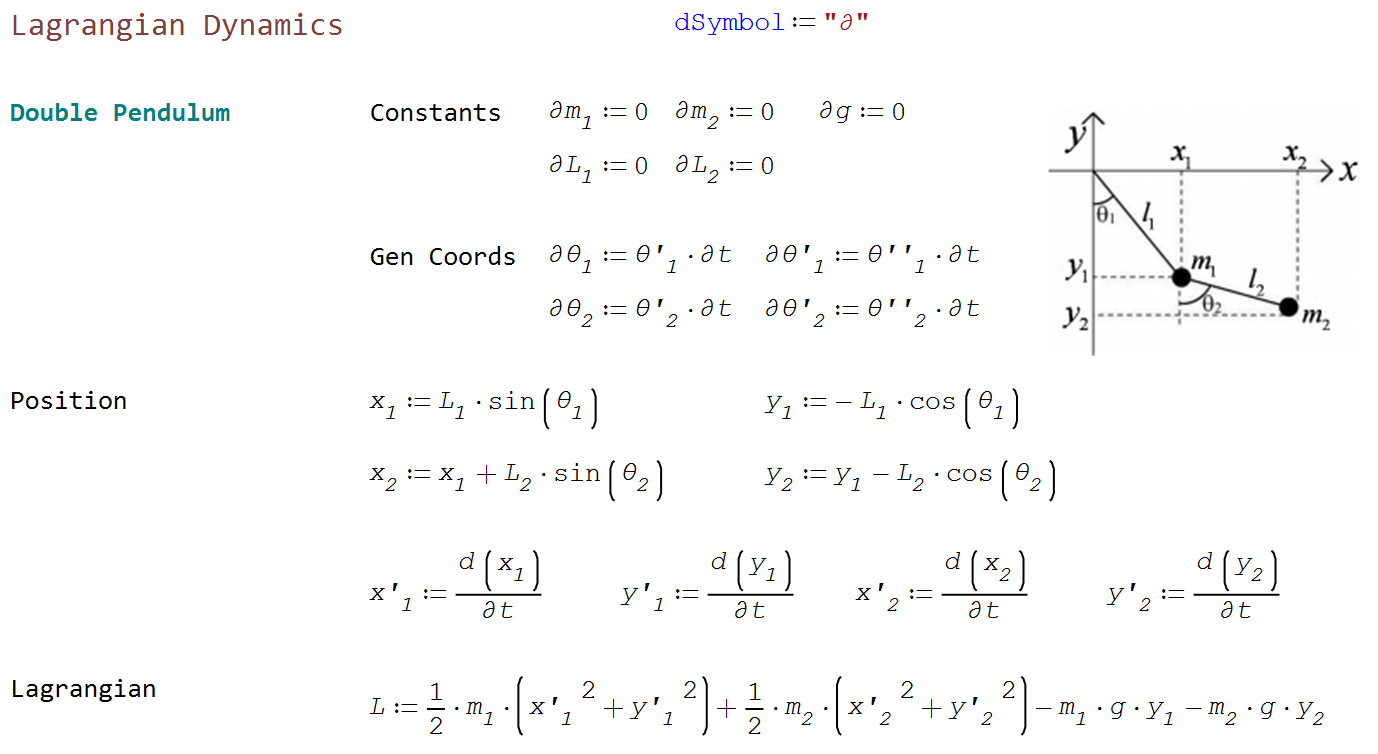 Hi. Using pure SMath code to deduce the equations of motion from the Lagrangian, with the functions in this post: https://smath.com/en-US/forum/topic/AeeMSM/Using-differentials.