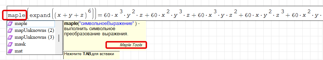 Maybe, you just have to switch Optimization> None in the context menu. SMath's symbolic "optimization" sometimes rolls back external expansion with Maple or Maxima.