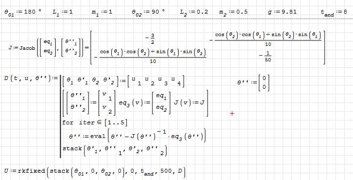 WroteHi Valery. For the single pendulum you can get the lagrangian from the olf post about differentials ( https://smath.com/en-US/forum/topic/AeeMSM/Using-differentials ) It's very simple and doesn't require much processing to use rkfixed.