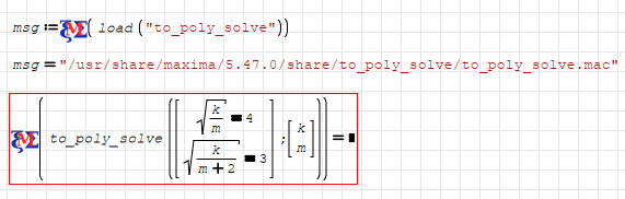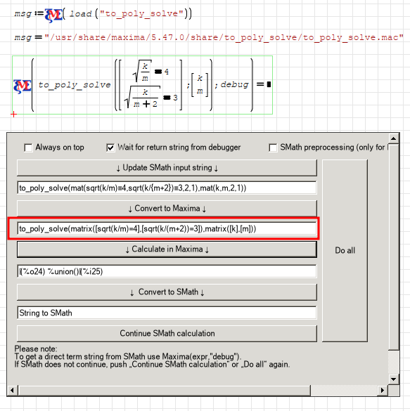 Also, solve() returns it result as a nested list of lists if there is more than one solution. Nested lists don't survive in SMath processing, so we had to replace the outer list by a matrix (row vector, for better optics).