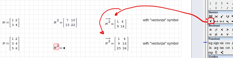 No, there is no element-wise matrix operations in Smath (like vectorize in Mathcad). You just have to use loops (for, while) to perform such operations.